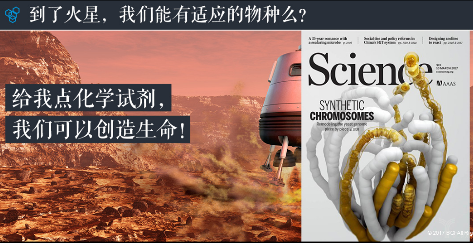 这是华大今年在Science上面发表的一篇文章,讲的是人工合成酵母染色体。我们创造了一个真核生物的生命,这个生命是按照人类的意志去合成的。