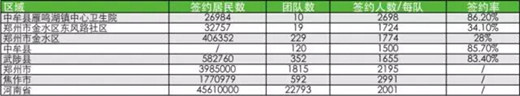 健康点计算发现,河南省平均每个家庭医生服务团队的签约居民数为2001,刚好落在新出台的深圳标准线上。